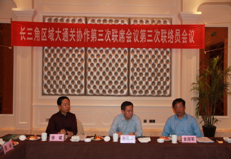 2011年10月12日-13日,长三角区域大通关协作联络员会议在浙江嘉兴平湖市召开。浙江省办公厅副主任孙厚军、上海市口岸办副主任金国军、江苏省口岸办副主任徐斌以及三地口岸办相关职能处室负责人参加会议。孙厚军副主任主持会议。