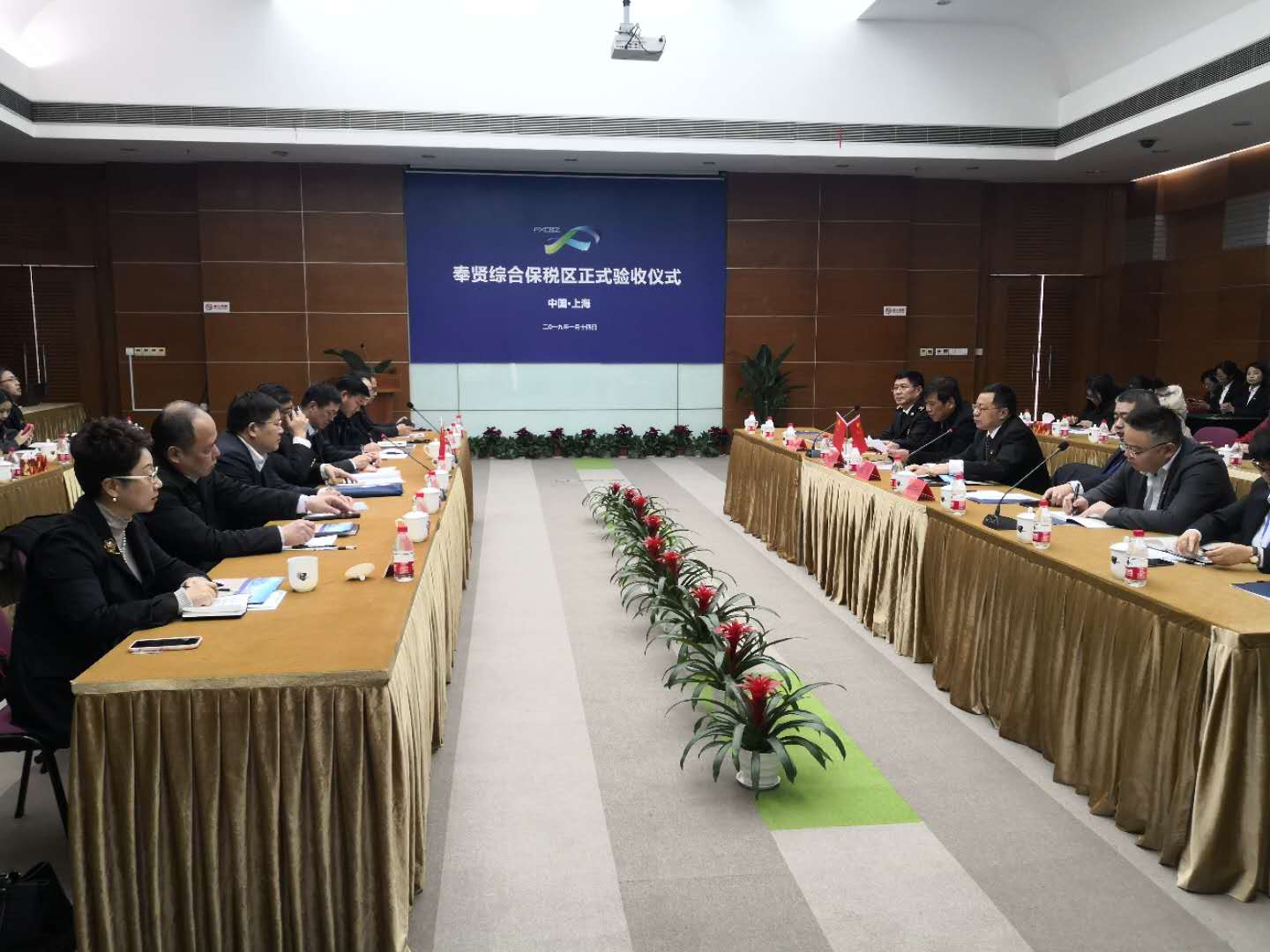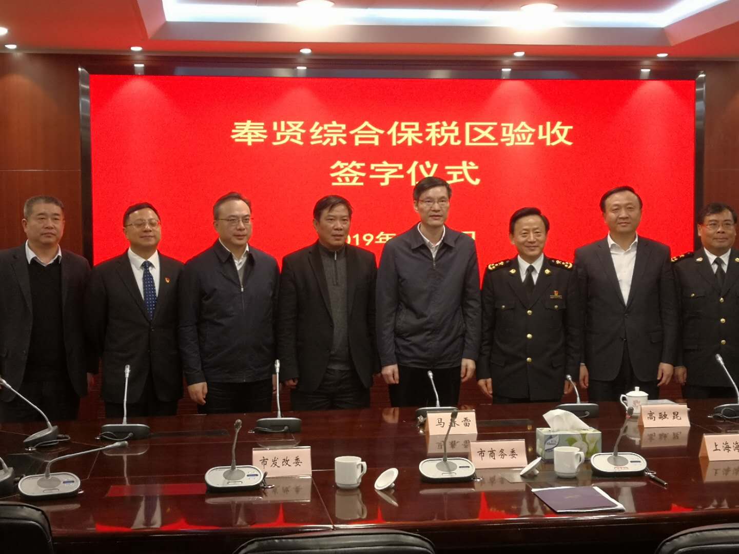 2019年1月14日下午,市商务委(口岸办)牵头组织上海海关、市发改委、市财政局、市税务局、市市场监督管理局、外汇管理局上海分局等单位,召开奉贤综保区验收工作会议。与会各验收单位代表上级中央部委,听取了奉贤管委会的情况汇报,现场察看了综保区查验监管设施的建设情况,一致认为奉贤综合保税区符合各项验收条件。上海海关关长高融昆与市政府副秘书长马春雷共同签署了验收会议纪要,标志着奉贤综合保税区正式通过验收。
