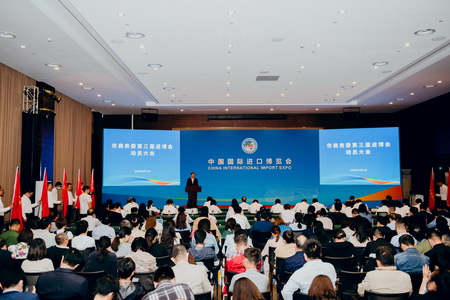 为贯彻落实习近平总书记关于进博会“越办越好”的重要指示精神,10月15日,市商务委在国家会展中心(上海)举行第三届进博会动员大会,进一步统一思想,提高认识,以更饱满的热情、更昂扬的斗志,圆满完成各项工作任务。会议由市商务委副主任申卫华主持,市商务委机关和委属各单位近300名党员干部参加。