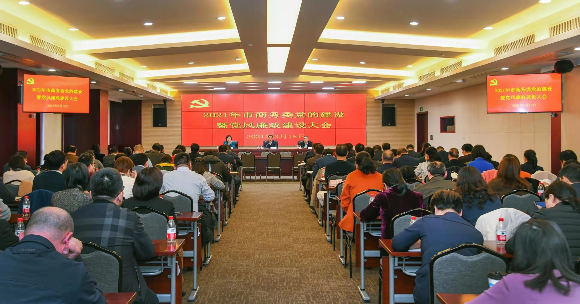 3月18日,市商务委召开2021年党的建设暨党风廉政建设大会。以习近平新时代中国特色社会主义思想为指导,传达十九届中央纪委五次全会、十一届市纪委五次全会精神,总结分析2020年党的建设和党风廉政建设情况,部署2021年主要任务。市商务委党组书记、主任顾军出席并讲话,市纪委监委驻经信工作党委纪检监察组组长陈荣标到会指导。市商务委党组成员、副主任诸旖主持会议。